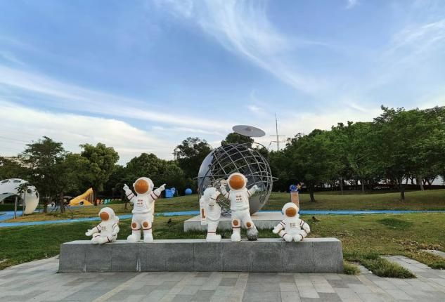 圖為團隊成員參觀梁溪空天產(chǎn)業(yè)園外宇航員雕塑景觀。蔣添怡 供圖
