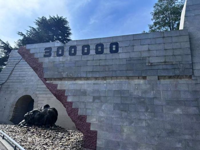在“倒下的300000人”雕塑前,團隊成員趙天昕帶著顫音的南京話,為沉默的幾何體賦予溫度。這些由黑色石材構成的雕塑,本是無聲的歷史符號,卻因方言解說,與聽眾建立起情感聯(lián)結。在銅板路上222雙腳印前,她壓低的解說聲拖出哽咽,每一道深深淺淺的腳印,都是歷史的鐵證,經(jīng)鄉(xiāng)音傳遞,化作能鉆進心里的記憶。
