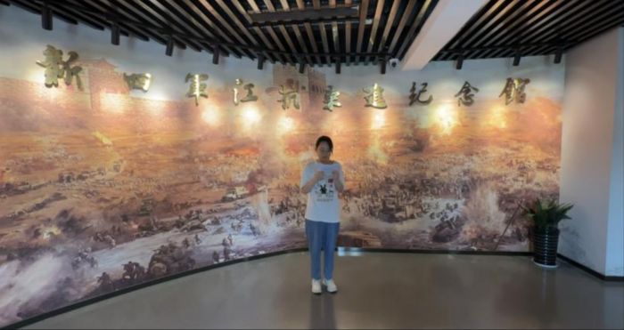 圖為團(tuán)隊(duì)成員在新四軍江抗東進(jìn)紀(jì)念館內(nèi)進(jìn)行實(shí)踐。闕雯婷供圖