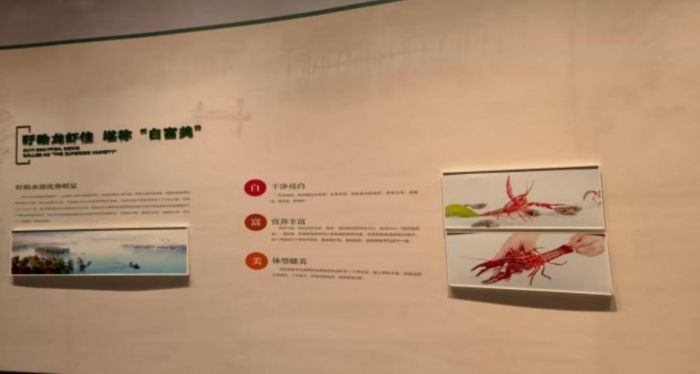 7月6日,團隊成員王如意踏入盱眙龍蝦博物館,一座按1:20比例精制的“蝦稻共生”生態養殖模型映入眼簾。齊嶄嶄的稻田被半把寬的環形蝦溝環繞,溝內水清見底,仿真小龍蝦或舞鉗示威,或藏身石縫,活脫脫一幅“稻蝦搭伙過日子”的生動場景。透過底部透明玻璃,細沙混泥層精準模擬龍蝦產卵蛻殼的“老窩”,沉水植物與人工蝦屋構筑棲息樂園。這座微縮景觀,正是盱眙人探索“與天共處”的綠色智慧結晶。智能屏上循環播放養殖畫面,鄉音的鮮活與科技的硬核相映成趣,讓綠色成果接上“地氣”,更讓鄉親們在腔調里讀懂了鄉村振興的深意。