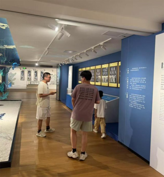 活動期間,實踐團隊來到了當地的剪紙博物館。在博物館里,隊員們看到了許多精美的剪紙作品,涵蓋了傳統題材與現代創新題材。傳統題材作品中,有栩栩如生的花鳥魚蟲,它們或靈動活潑,或嬌艷欲滴;還有充滿故事性的神話傳說場景,人物形象鮮明,情節生動。現代創新題材作品則結合了當下的流行元素與時代特征,將剪紙藝術與時尚、科技等元素巧妙融合,如以城市建筑為主題的剪紙作品,展現出城市的現代風貌;以環保為主題的作品,傳遞出對生態環境的關注與思考。從漢代“剪桐封弟”的典故溯源,到明清時期民間窗花、喜花的盛行,再到現代剪紙藝術家融合動漫、抽象元素的創新作品,數百件展品串聯起剪紙藝術跨越千年的演變。其中,一幅長達5米的《二十四節氣圖》格外引人注目,作品以細膩的線條勾勒出不同節氣的自然景致與民俗活動,牡丹、蟬鳴、瑞雪等元素在紅紙上栩栩如生,展現出匠人精湛的鏤空與剪刻技藝。