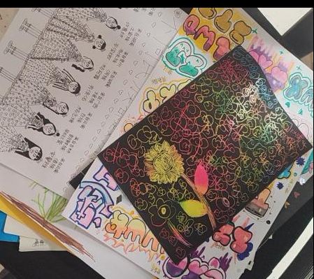推開精神衛(wèi)生中心的大門,實踐隊員們首先走進了孤獨癥兒童的生活空間與藝術(shù)工坊。墻上懸掛的畫作色彩明快,稚嫩的筆觸里藏著孩子們對世界獨特的感知;桌案上擺放的手工作品造型別致,每一張衍紙、每一塊拼貼都凝結(jié)著他們心靈的表達。這些作品或許沒有精致的技法,卻以最本真的姿態(tài),向隊員們展現(xiàn)了孤獨癥兒童內(nèi)心豐富的宇宙。同學(xué)們駐足凝視,輕聲交流,在藝術(shù)的橋梁下,悄然拉近了與這些特殊孩子的距離。
