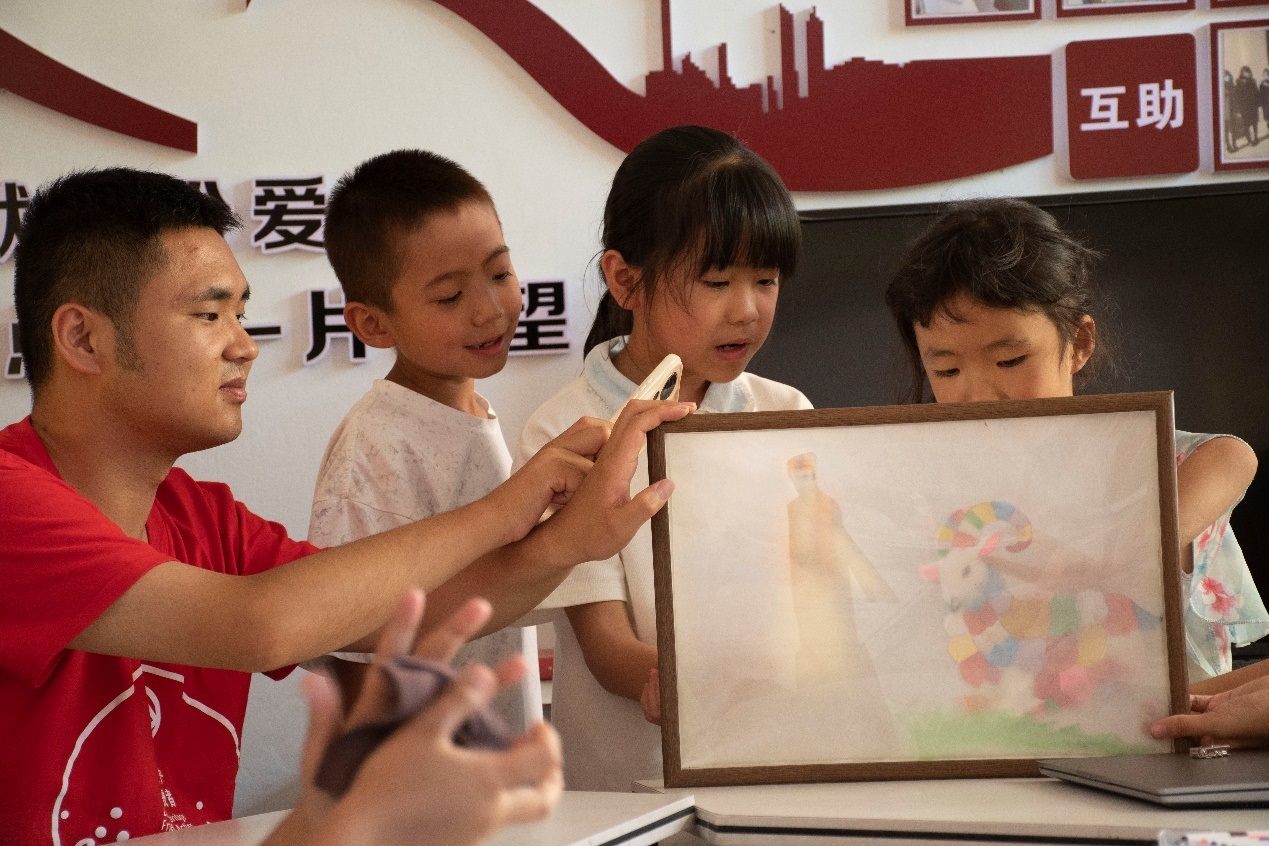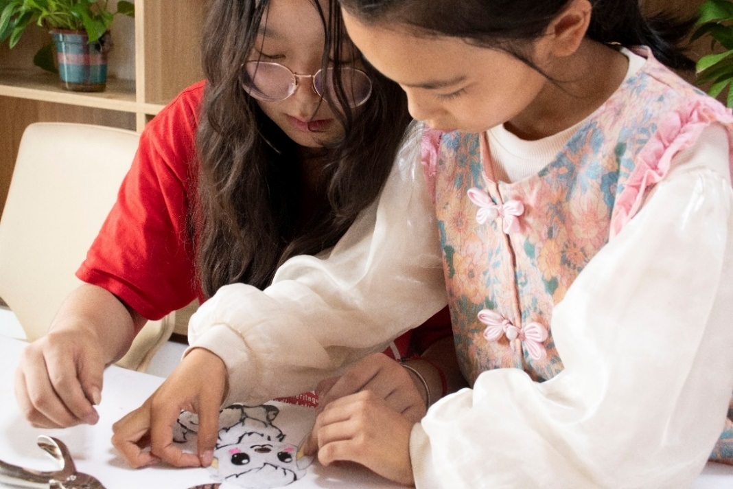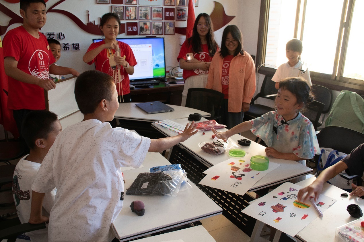 (圖八為隊員幫助孩子們完成皮影展示,杜承睿供圖)