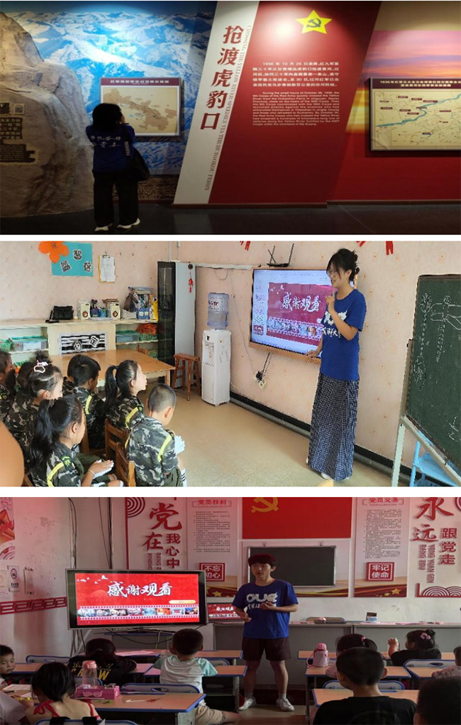 在甘肅古浪戰役紀念館,重溫紅軍西路軍在古浪地區浴血奮戰的英雄事跡;在武威市民勤縣蔡旗鎮蔡旗中學,通過知識問答等互動形式,讓孩子們在歡樂中了解海疆安全知識。在濱州博興中學,以歷史時間線為脈絡,結合生動案例講述海疆安全故事。在威海乳山府前社區,用通俗易懂的語言講解總體國家安全觀的內容宗旨。在日照黃墩鎮小草學堂,為小學生們講解中國近代曲折歷程與艱苦奮斗。在山西省晉中市祁縣下申村幼兒園宣講國防海防知識,在童趣互動中埋下國家安全的種子。