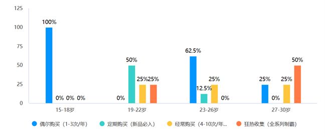 圖2不同年齡段消費(fèi)者購(gòu)買頻次
