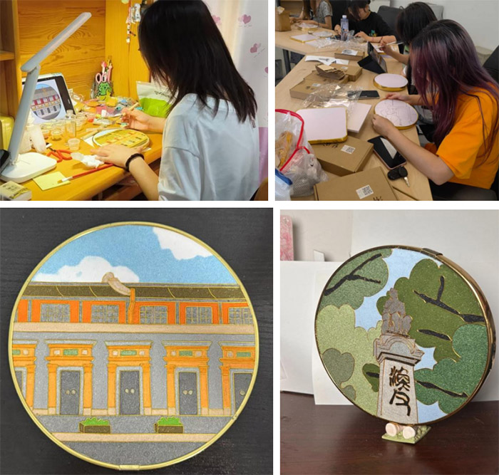 二、用非遺技藝傳遞紅色精神,讓情感“連得上” 金絲勾勒出紅色建筑,彩砂填充著歷史色彩,每一件作品都訴說著那段烽火歲月。團(tuán)隊(duì)成員在非遺傳承人的指導(dǎo)下,潛心學(xué)習(xí)設(shè)計(jì)、掐絲、點(diǎn)藍(lán)等核心工序,圍繞中共一大會(huì)址的木窗、四行倉庫的彈痕墻等紅色符號(hào),創(chuàng)作出“紅色記憶”系列作品。