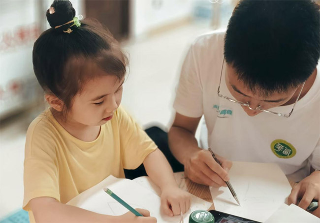 圖為團隊成員協助小朋友繪畫。詹杰供圖