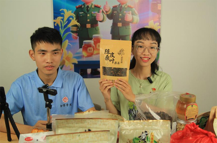 【圖片:實(shí)踐隊(duì)成員體驗(yàn)電商直播帶貨】