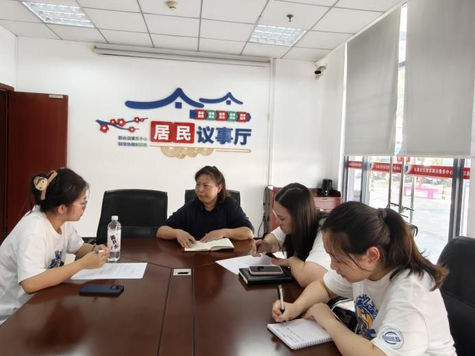 實(shí)踐團(tuán)與祥龍社區(qū)工作人員交流,探討智慧助老服務(wù)模式 供圖李煦