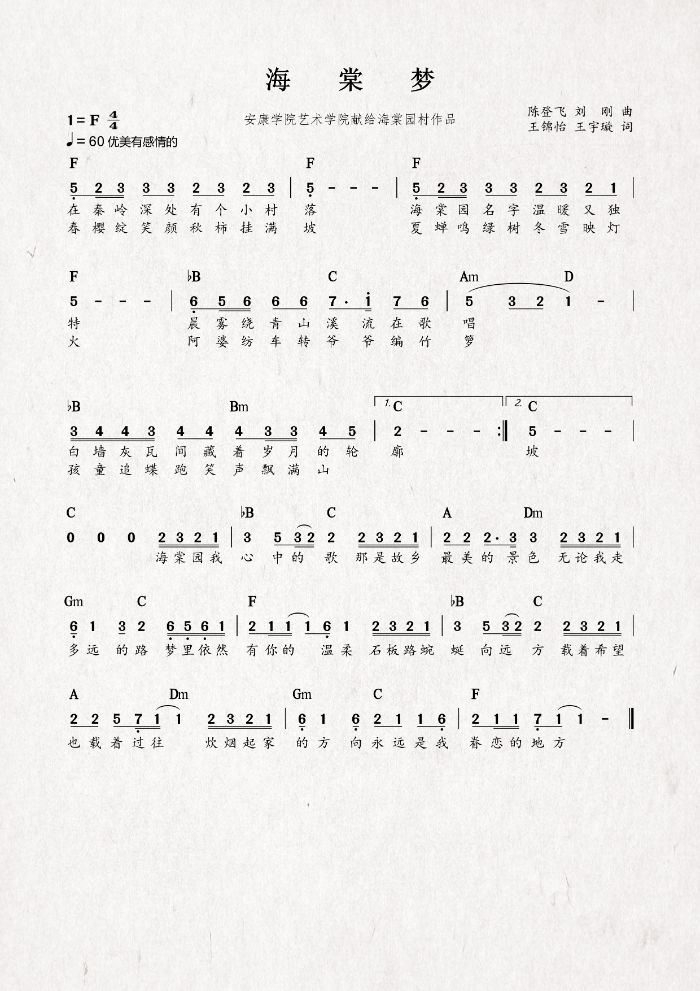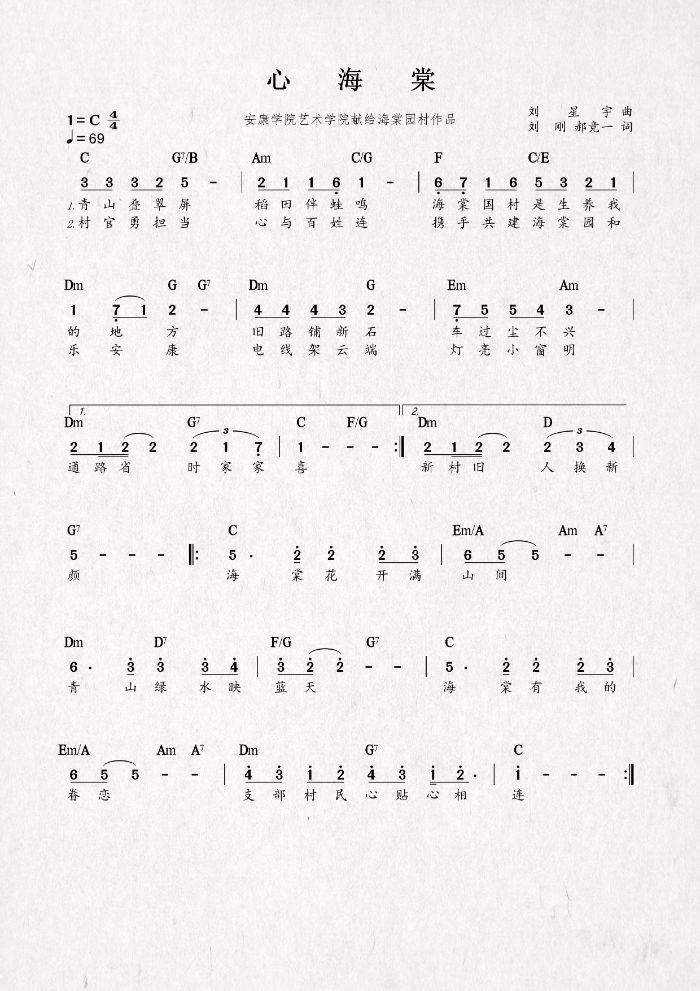 圖1 村歌《海棠夢》詞曲 圖2 村歌《心海棠》詞曲
