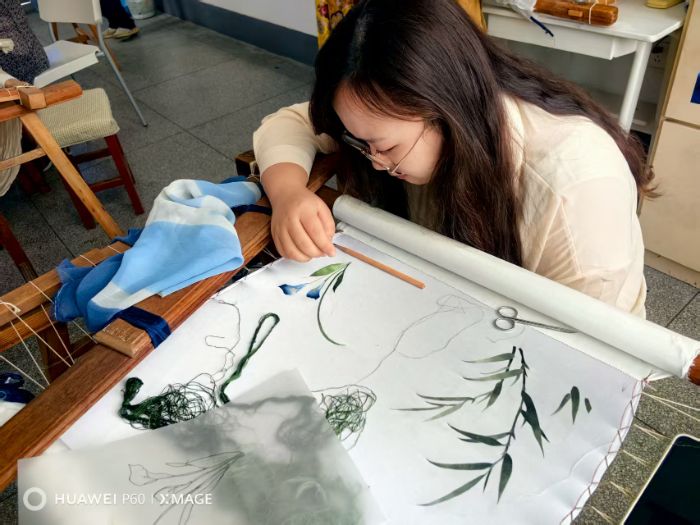 本次蘇州組團(tuán)隊(duì)于7月11日來到了蘇州的英達(dá)服裝繼續(xù)教育學(xué)院,團(tuán)隊(duì)成員在蘇繡老師與學(xué)生的帶領(lǐng)下對(duì)蘇繡作品進(jìn)行了鑒賞,并觀摩了蘇繡的繡制手法。在對(duì)蘇繡老師的采訪過程中,她肯定了知識(shí)產(chǎn)權(quán)對(duì)于蘇繡技藝保護(hù)的重要價(jià)值,也提出了其中存在的問題。