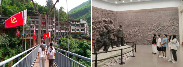 實踐隊走過紅軍索橋 實踐隊參觀先輩雕像