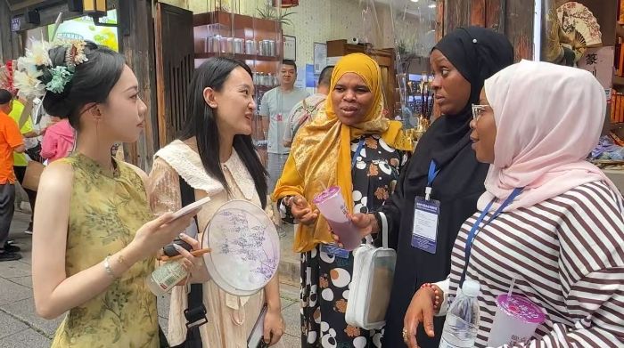 漫步在古色古香的街巷間,團隊偶遇了幾位同樣佩戴三條簪的本地女性。她們的笑容中透露出對這份傳統的自豪與熱愛,仿佛在與祖先進行著一場跨越時空的對話。“戴上它,就感覺自己與這片土地、這份文化有了更深的聯系,特別驕傲。”一位女士動情地分享道。而更令團隊成員驚喜的是,她們的出現也吸引了外國游客的目光。在熱情的交流中,外國友人紛紛表達了對三條簪獨特美感與文化底蘊的贊嘆,認為它完美融合了女性的優雅與力量,是東方文化的一顆璀璨明珠。