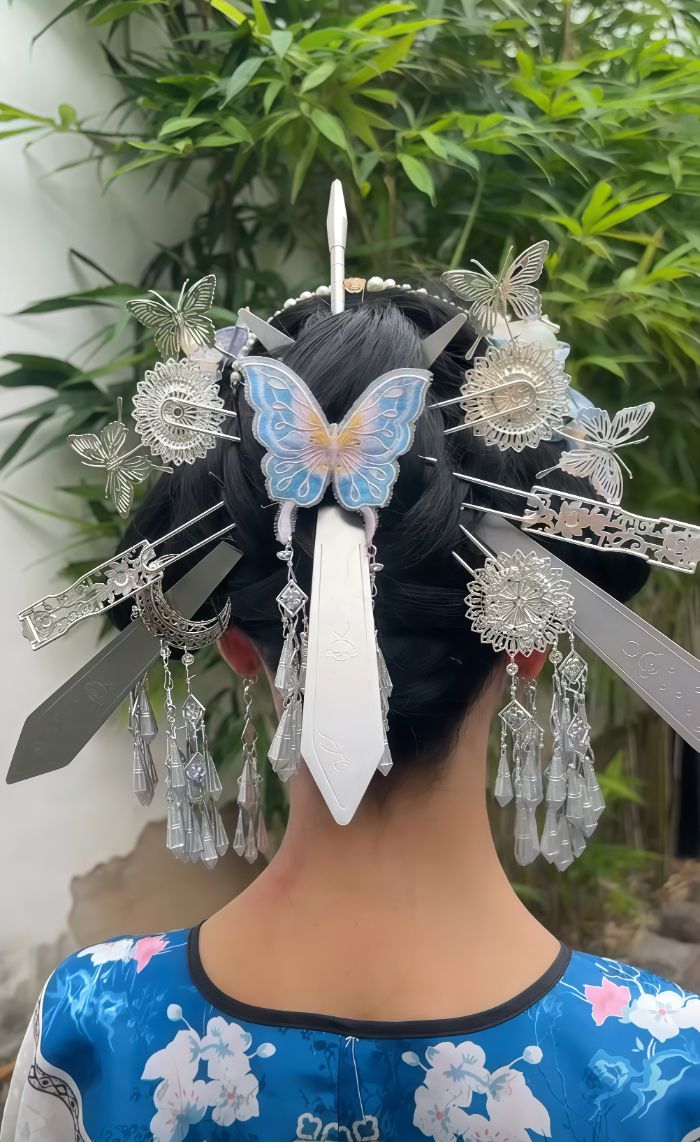 步入三坊七巷的三條簪文化體驗店,仿佛穿越了時空,回到了那個古典與現代交織的年代。店內,年輕的身影與古老的技藝交相輝映,三位女師傅以她們那雙巧奪天工的手,為團隊成員編織著一段段關于美的傳奇。“三條簪,它不僅僅是發間的點綴,更是福州女子堅韌、智慧與獨立的象征——三把刀,為國為民,為家為己,每一把都承載著深厚的情感與責任。”師傅們的話語中,透露出對這項傳統技藝的無限熱愛與傳承的堅定信念。隨著發簪的輕輕插入,成員們的古典美中更添了幾分英氣與自信,仿佛瞬間化身為古代的女中豪杰。