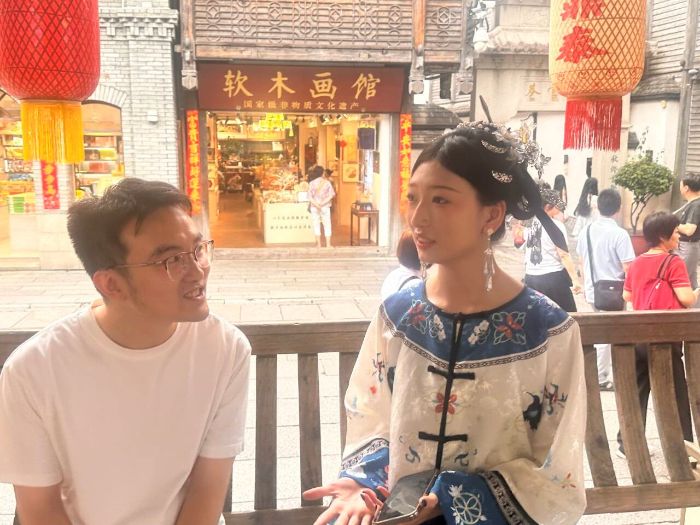 圖為“簪銀承閩韻,青鋒踐她行”實踐團采訪路人對三條簪文化看法。