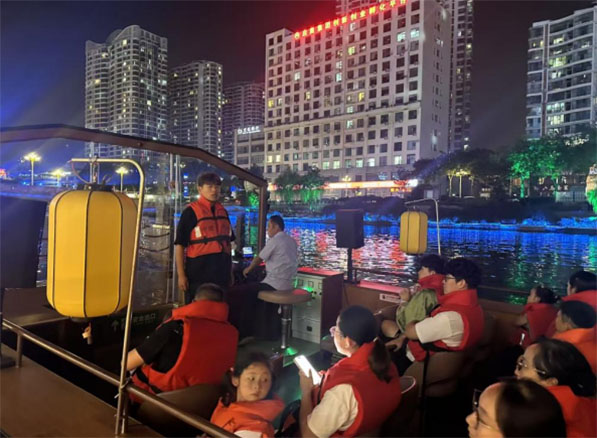 “夜畫瑯琊”活動在船上精彩開啟。實踐團成員積極履行職責,開展安全宣講。強調乘船規范、應急逃生要點,提醒大家注意個人財物與自身安全。清晰的講解、認真的態度,為參與者營造了安全的活動環境,讓大家能盡情享受夜瑯琊之美。