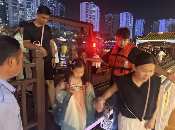在實踐團成員全力守護下,游客們得以安心愜意地乘船賞景。實踐團成員以高度的責任感和專業能力,保障了游客安全有序乘坐游船。他們的堅守與付出是活動成功的基石,也為未來更多夜游活動提供了可靠范例,期待更多游客能在安全護航中感受夜瑯琊之美。