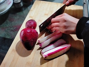 鹽豆子的制作非常講究,且制作工藝精細。通常在冬天來臨之際,采用優質黃豆,經清洗浸泡、煮制成熟、發酵培菌、加料拌味、晾曬至干、密封儲存等工序制成,整個過程大約10天的時間。其具體制法如下:先將清洗干凈的黃豆浸泡18個小時,然后入水鍋中煮至熟透,撈起來瀝干水分。趁熱把黃豆放到干凈的食品袋里,外裹一層稻草或薄棉被捆牢,然后在太陽能夠曬到的地上挖一個50厘米到80厘米深的土坑,用麥秸墊襯好,然后把裝入熟豆的大蒲包放入坑里,上面用麥秸蓋平,最后培土。另一種辦法是,將大蒲包立即放入灶房柴草內,溫度保持在20攝氏度到30攝氏度之間,不宜過低或過高。上面提到的這兩種方法,只需要三天或四天就可以將豆捂好,此時就會看到熟豆上長出一種白而帶綠的黏絲菌毛。這一過程在徐州被稱之為“捂豆”。把出包的十斤黃豆倒入盆中攤開,在熱水中融化四兩精鹽,澆淋在黃豆上,隨即撒上一兩花椒粉、一兩八角粉、一兩辣椒粉或七兩辣椒醬,舊時農家是用拐磨將干紅辣椒配上水磨成辣椒醬;但現在,城里人則直接到加工椒醬的地方用機器加工好辣椒醬、三兩細姜絲、三兩蔥花,好多人喜歡再配上適量的鮮紅蘿卜片。將以上各種調料加入后,用筷子反復攪拌均勻,如果喜歡吃辣,就可以多放點辣椒粉;如果喜歡吃麻,就多放一些花椒面,攪拌好后就可以吃了,質地脆嫩,味道咸鮮香辣,色澤黑紅,叫做“鮮鹽豆”,是佐餐下酒的開胃小菜。如果放到陽光充足的地方晾曬四到五天,把它曬干之后再吃,就叫做“干鹽豆”,如果想讓它儲存的時間長一些,可以把鹽豆放進消過毒的壇子里儲存。開壇食用的時候,淋點香油或花椒油,徐州人往往喜歡拌點蒜苔末,再用當地人們愛吃的面食煎餅或烙饃卷食,更是別具風味。