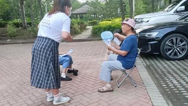 為提高群眾的詐騙防范意識、普及法律知識,河南財(cái)經(jīng)政法大學(xué)法學(xué)院社會治理實(shí)踐團(tuán)于7月抵達(dá)天津市靜海區(qū)眾泰欣苑社區(qū),志在為當(dāng)?shù)匦^(qū)居民普及防詐騙知識。團(tuán)隊(duì)成員先就當(dāng)?shù)鼐用駥τ诜涝p騙知識的認(rèn)知程度進(jìn)行了簡單調(diào)研,團(tuán)隊(duì)成員了解到,在當(dāng)今社會缺乏防詐騙知識的主要是老人群體,在此認(rèn)知基礎(chǔ)上,團(tuán)隊(duì)成員利用準(zhǔn)備好的防詐騙宣傳海報(bào),并結(jié)合當(dāng)今時(shí)事下最經(jīng)常出現(xiàn)的“快遞包裹破損詐騙短信”與“防疫信息詐騙短信”,賦予其應(yīng)對方法,向眾泰新苑社區(qū)內(nèi)的老人進(jìn)行了宣傳,利用貼近生活的例子向老人們闡述了普及防詐騙知識的重要性。隨后團(tuán)隊(duì)成員圍繞著近期出現(xiàn)的詐騙案例向老人們宣傳了面對詐騙的應(yīng)對方法,宣傳活動在老人們的感謝與鼓勵(lì)之中順利結(jié)束。