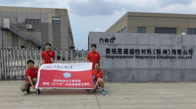 為積極響應國家在新材料產業上的號召,探尋新型材料與新工藝,合肥工業大學材料科學與工程學院“科技賦能,材料興國”暑期實踐團隊于7月14日來到了滁州市南譙區中心蘇滁高新區。圍繞第三代永磁材料釹鐵硼制備工藝,以釹鐵硼為原料的注塑工藝與注塑元器件及組件的研發設計,新一代5G基站的電機轉子制作工藝等相關內容,團隊開展了為期4天的研學活動。