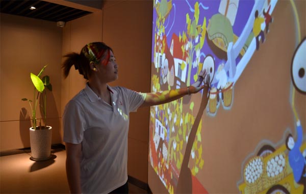 圖為實(shí)踐調(diào)研團(tuán)隊(duì)成員與數(shù)字化展板互動(dòng)體驗(yàn)。