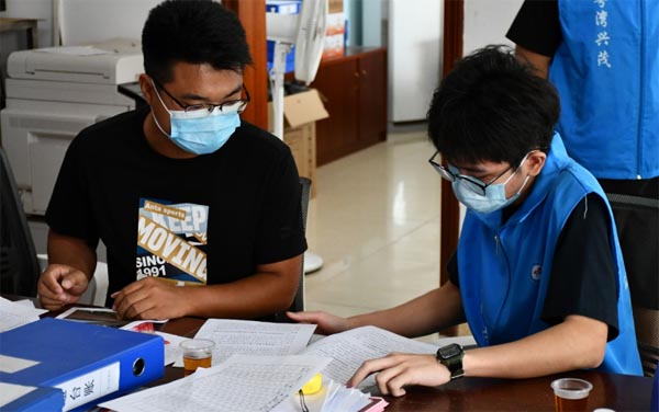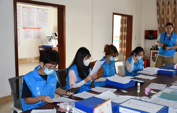 圖為“粵灣興茂”實踐團與李山村黨群服務中心的工作人員就人居環(huán)境整治相關(guān)文件進行討論 通訊員 徐思昊 供圖
