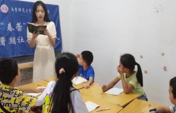 (通訊員:周姝含 蔡文潔)南京師范大學(xué)金陵女子學(xué)院“春蕾”童書館暑期社會實踐團(tuán)隊依托金陵安妮童書館,帶領(lǐng)青少年兒童一起閱讀探討英文繪本,在學(xué)習(xí)英語的同時,感悟精神,由此向參加活動的青少年兒童宣傳講述新中國發(fā)展的重要理念、理論,使得紅色精神更加深入人心,傳承紅色基因。并與來自全國各地的隊員們,一起在家鄉(xiāng)所在地的圖書館、電視臺、學(xué)校、博物館等地開展活動,在趣味中帶領(lǐng)孩子們感悟中國血脈,連成一條紅絲帶。