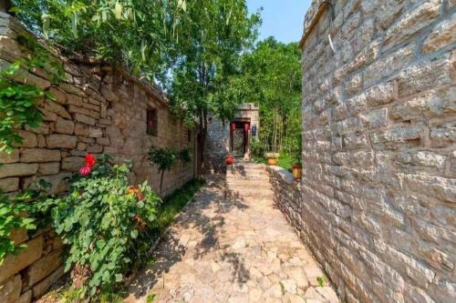 往里走便進(jìn)入了一個胡同,胡同里有石板鋪路,沿著石板路前進(jìn),一座一座的石屋吸引了我的目光,我仿佛聽到陳舊的石墻石屋在訴說著它們的過往,一塊塊形態(tài)相似的石頭組成了一座座房屋,構(gòu)成了山上最美麗的風(fēng)景線,推開一扇小院的門,院中有石磨,看樣子早已廢棄不用,粗糙的表面像是在向人們炫耀它的豐功偉績,它理應(yīng)值得被銘記。打開一間民宿的門,我感受到了濃濃的鄉(xiāng)土氣息,木桌,木椅全是由自然的樹木做成,透漏出安靜祥和,民宿與古器具形成對比,見證著時代的變遷,小院里的池塘上漂著幾株植物,不禁讓我感到心曠神怡。