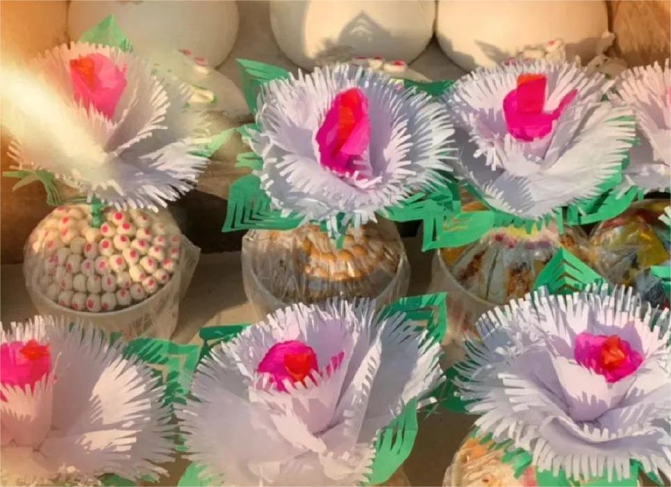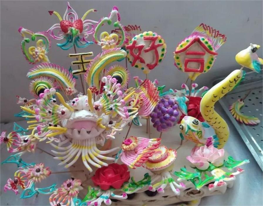 完燈之喜:孩子十二歲時(shí),老人家也會(huì)制作一個(gè)直徑一尺多的“花兒箍攔”,在圓形面圈上捏塑著各種動(dòng)物和花卉,祝愿孩子平安成長(zhǎng)、長(zhǎng)命富貴,借動(dòng)物和花卉表達(dá)吉祥如意的美好祝福。