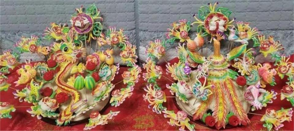 男女成婚時(shí),親友會(huì)送上“花好月圓”或是“龍鳳呈祥”......結(jié)婚花饃是對(duì)新人的祝福,象征著吉祥如意,寄寓著人們深厚而美好的感情,是對(duì)新婚夫婦的恭賀和對(duì)美好生活的熱愛(ài)和向往。
