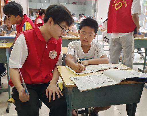 圖為志愿者和學生一起編花繩,學生正在積極學習。倪佳穎 攝