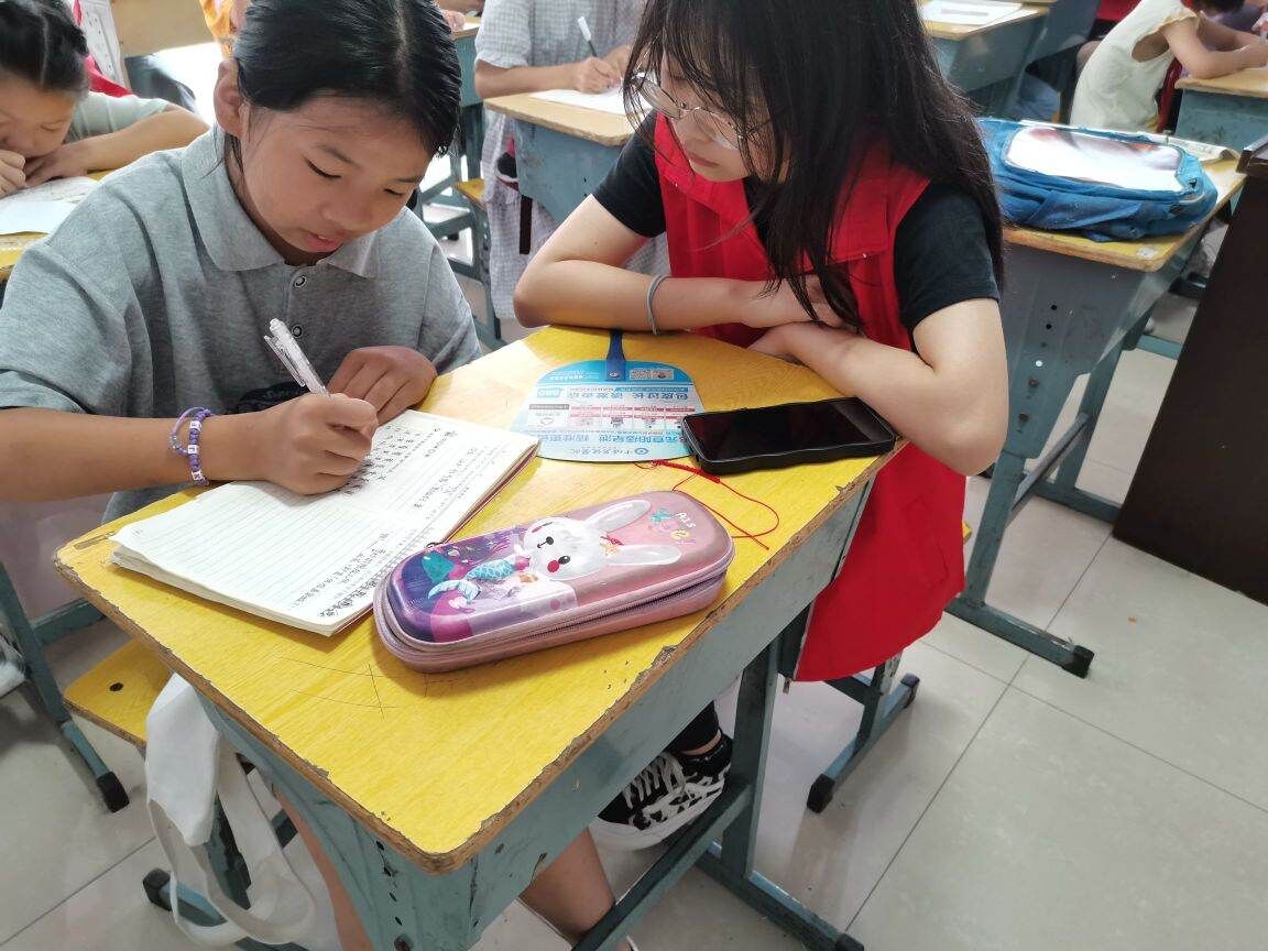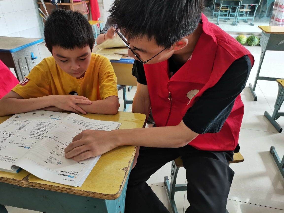 圖為志愿者王子龍為小朋友輔導作業。徐斕菲 攝