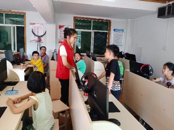 圖為志愿者與孩子們一起參與游戲。朱宏基 攝