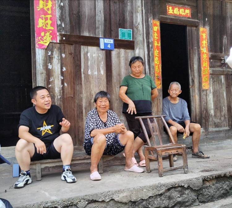 圖為正在對藍溪口村支部委員會前任書記進行采訪 通訊員 何可 攝