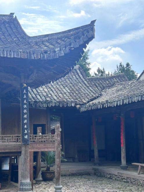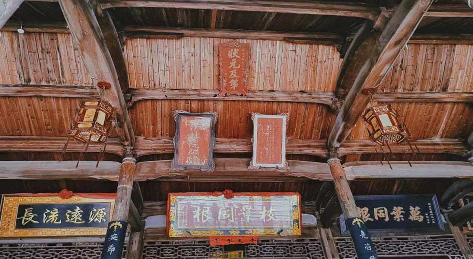 在實踐的過程中,小組成員發現景區內的文化特征十分明顯,芙蓉古村是楠溪江各村落中歷史最悠久的,按照“七星八斗”的思想進行規劃設計,意為天上星與地上人相對應,星筑臺、斗鑿池以為象征。在這里,你不但可以了解到中國古代耕讀文化、宗族文化演變情況,而且可以感受到村寨建筑藝術的動人魅力。同時,芙蓉古村落集文化、藝術、物質和精神文化于一體,保持著極其豐富的歷史文化以及文化遺存,也具有鮮明的“崇尚柔慧,厚于滋味”的江浙一代人文情懷。就例如途徑其中陳氏大宗,相似于其他宗祠的作用,例如供奉祖先或先賢之外,芙蓉古村的陳氏大宗內還設置了戲臺和觀戲的座位用以娛樂,將祭宗祀祖和聚會看戲的功能相結合,使陳氏宗祠有了更重要的意義,不僅是宗族內祭祀祖先、弘揚古圣先賢文化的場所,更是鏈接了老一輩和孩童一輩,聯系各家各戶間的親情,以及作為敬宗睦祖的敦倫之所,是子孫后代敬宗愛族的場所。中國傳統社會是非常注重人倫和禮制的,江浙一代文化尊重人欲,重視家庭和家族的血緣親情關系,這在芙蓉古村里有著很好的表現。