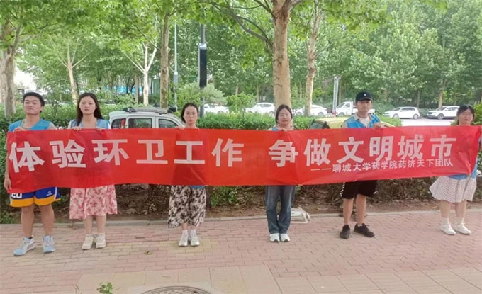 為培養(yǎng)學生熱愛勞動的習慣,豐富學生的社會實踐經(jīng)驗,體驗環(huán)衛(wèi)工人的辛苦,7月11日,聊城大學藥學院藥濟天下社會實踐團隊于聊城市花園路舉辦以“體驗環(huán)衛(wèi)工作,爭做文明城市主人”為主題的社會實踐。