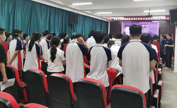 窮且益堅,不墜青云之志。 身處新時代,無論是宣講面向的中學生,還是組織宣講的實踐隊員,都應樹立鴻鵠之志,并篤行堅持。姜淇竣與學生互動探討了“夢想”話題。“什么是夢想?”有位同學舉手說:“夢想是經過努力才能實現的”,另一位同學補充:“夢想一開始決定時會比較忐忑,但實現之后會很激動”。“那如何實現夢想呢?”“認真學習”“堅持不懈”“永不放棄”,學生們的回答聲此起彼伏,心中的夢想各異,但大家都愿意為自己的夢想勇敢嘗試,積極進取。最慢的步伐不是跬步,而是徘徊;最快的腳步不是沖刺,而是堅持。“既然選擇了遠方,便只顧風雨兼程。既然目標是地平線,留給世界的只能是背影”,姜淇竣用此作為結束語,勉勵新一代學子們堅定自己的信念,肯定內心的答案,以努力與堅持為舵,抵達夢想的彼岸。