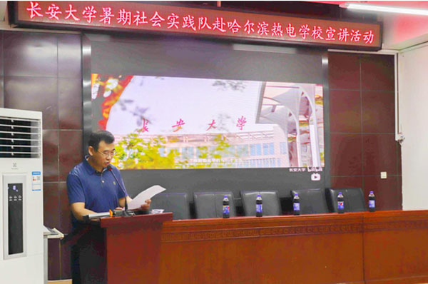 為深入學習宣傳貫徹黨的二十大精神,引導青年學生培養“強國復興有我”信念,增強愛國主義情懷,實現少年明志、青年篤行、壯年成才,7月13日上午,長安大學公路學院“路橋飛渡∙冰城新篇”暑期社會實踐隊來到哈爾濱熱電學校,圍繞“實踐、夢想、家國情懷”三個主題,面向六十余位初四學生開展宣講活動,該校副校長張立強、教師王巖出席活動。
