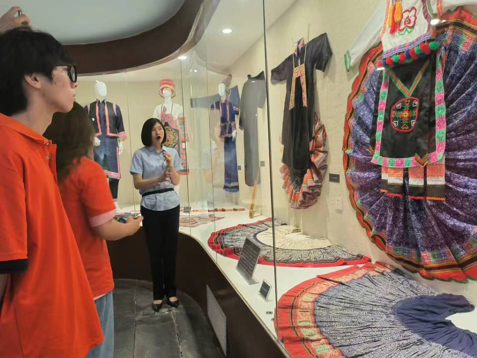 圖為“筑夢”社會實踐團隊聽取講解員講解仡佬族歷史。