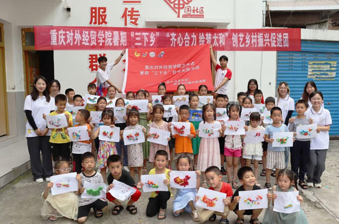 為扎實開展學習貫徹習近平新時代中國特色社會主義思想主題教育,深入學習習總書記關于教育的重要論述,全面貫徹黨的二十大精神,堅持教育、科技、人才“三位一體”的戰略部署,堅持教育優先發展,加快建設教育強國,加強青少年素質教育,引導青少年形成正確的價值觀,提高他們的自我意識和創造力,提高其未來的職業和生活樂趣。近日,重慶對外經貿學院藝術設計學院“齊心合力繪夢太和”創藝鄉村振興促進團前往重慶市合川區太和鎮馬門溪、絲綢園社區,開展“多彩陽光,藝路同行”暑期教育系列課堂,助力鄉村教育發展。