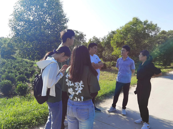 水光瀲滟、花樹環繞,張樓的生態美在實踐團的眼前演繹得淋漓盡致。親眼目睹習近平總書記“兩山理論”的生動實踐,愈加體會到習近平總書記生態文明思想中的智慧。望著眼前綠意盎然的一片林海,實踐團隊長肖涵表示:生態環境保護任重道遠,我們要深入學好專業知識,為涉農企業提供發展咨詢,將“綠水青山”化為“金山銀山”,推動經濟發展綠色升級。