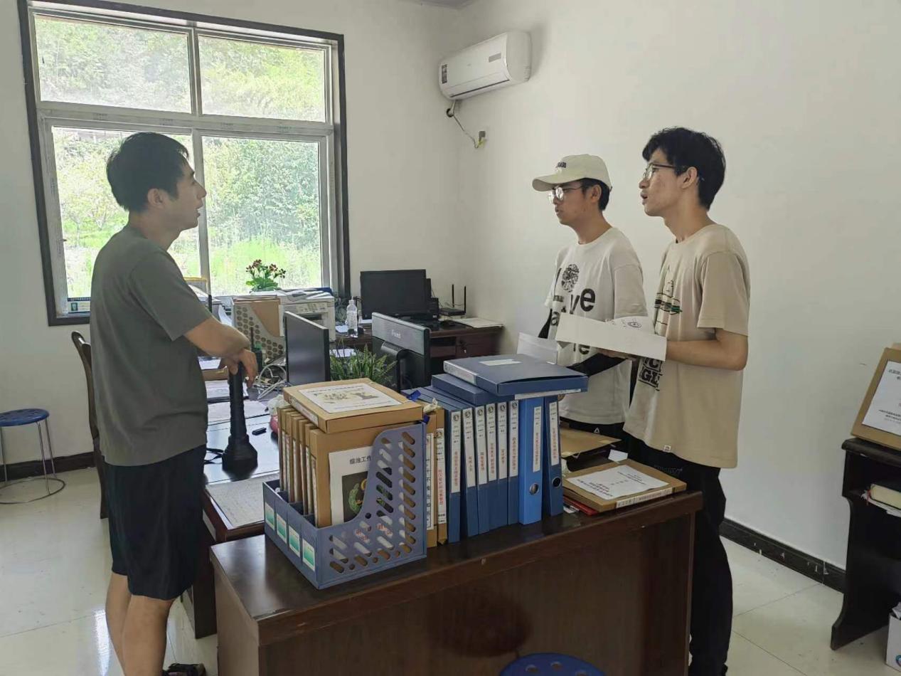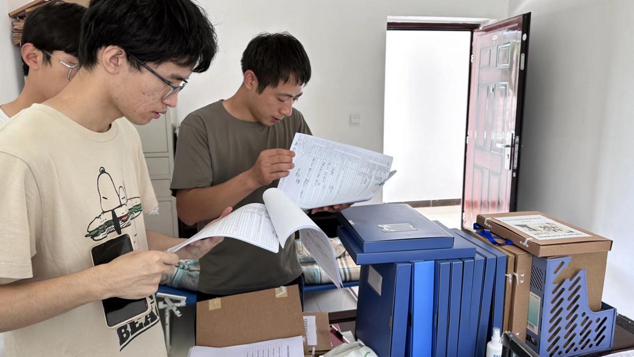 會談進入尾聲,部分實踐團成員跟隨鞏副書記來到檔案室查閱脫貧攻堅與鄉村振興的相關文件。一份份調研問卷,一冊冊脫貧名單,鞏書記翻閱是那么的嫻熟自然,因為每一份都是他們用心整理出來的。基層黨群工作與學生工作,兩個看似無關的東西實踐團成員卻和鞏書記相談甚歡。“工作難免十全十美吧,有人贊賞也肯定有人非議,為愛發電,問心無愧!”