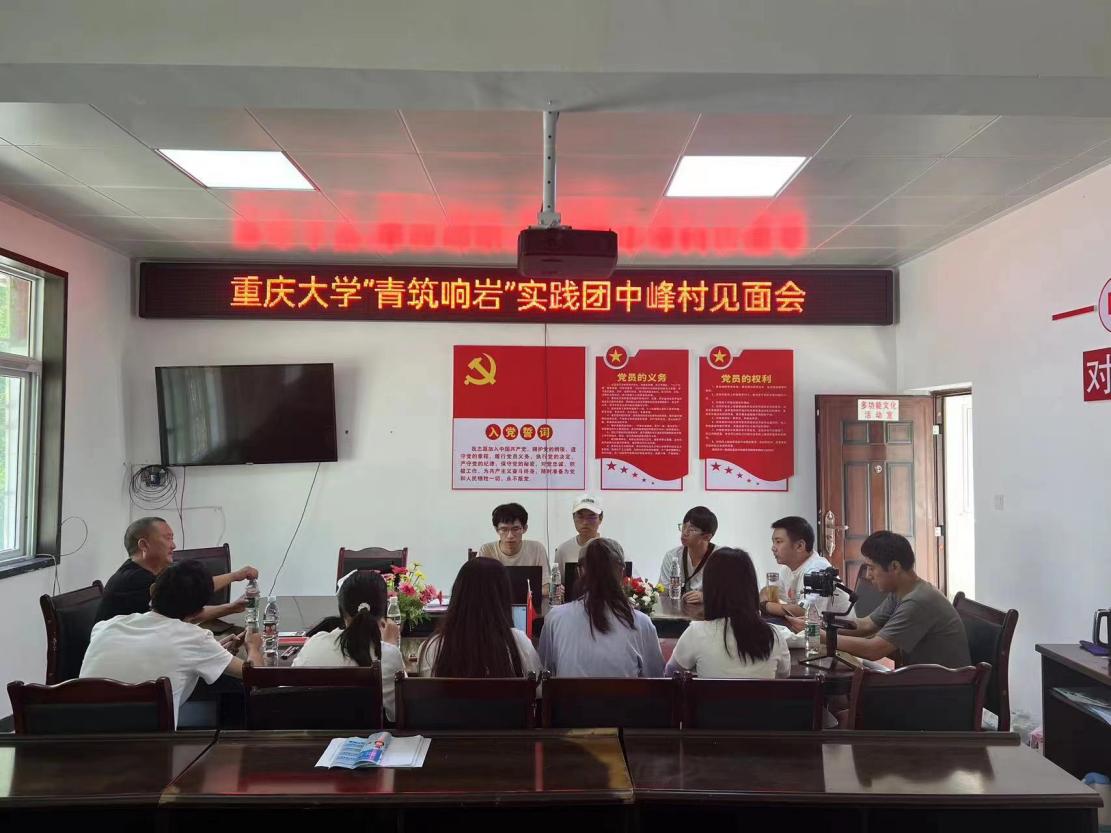 7月23日9時,重慶大學青筑響巖實踐團來到四川省綿陽市響巖鎮中峰村進行交流座談。響巖鎮中峰村村主任房興友、村支書馮文黎、黨總支副書記鞏定兵及重慶大學青筑響巖實踐團各成員一同出席此次座談會。