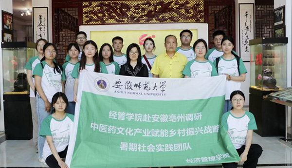2023年6月30日,安徽師范大學經管學院赴亳州調研中醫藥文化產業賦能鄉村振興戰略本科生社會實踐團隊為進一步探索亳州這座擁有著悠久歷史的中醫藥文化名城,全體成員前往康美中藥材市場與斯力泰健康產業集團有限公司進行了調研采訪。