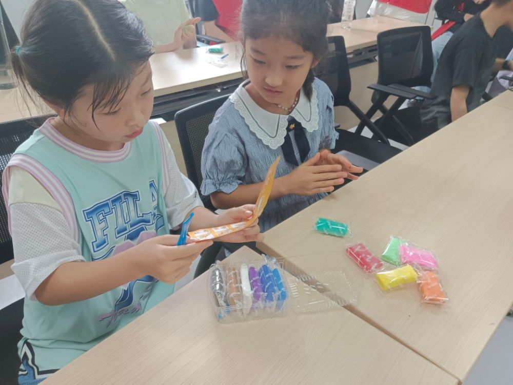 最后是小朋友們最喜歡的環節——動手實踐。實踐團成員給小朋友們分發超輕黏土,并提供亞運會吉祥物的照片,幫助他們一起捏制黏土。五顏六色的黏土在他們靈巧的雙手中,化成或可愛或霸氣的形象。
