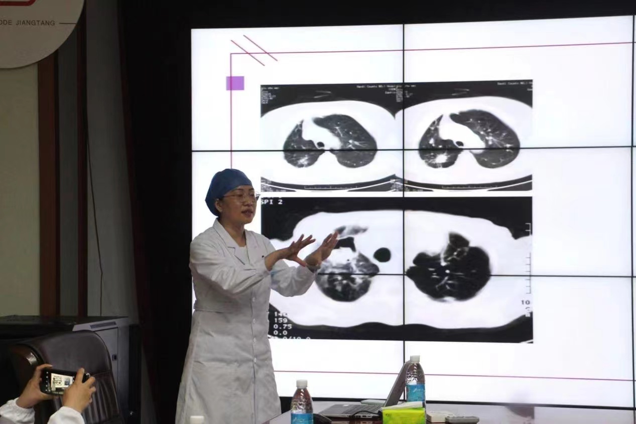 圖為傳染病醫(yī)院醫(yī)生向大家講解結(jié)核病