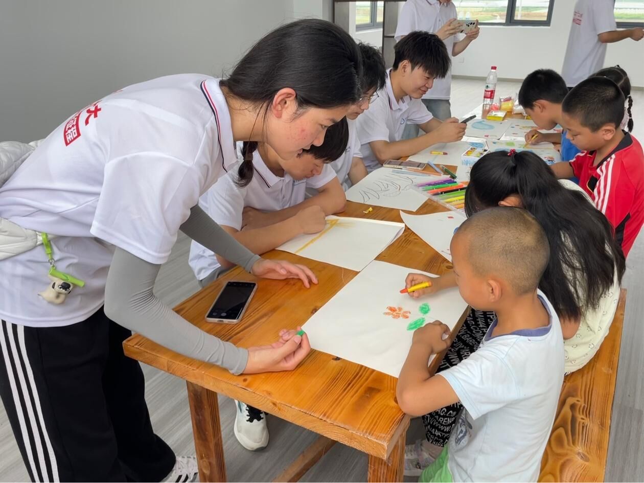 圖為調研隊的成員在給當地小朋友進行農產品知識競答比賽,小朋友正積極參加。多彩大學生網通訊員 丁曉陽 攝