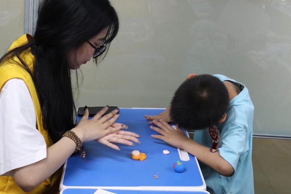 面塑是以面粉為主料,調成不同色彩,用手和簡單工具,塑造出各種栩栩如生的形象的傳統(tǒng)藝術,俗稱面花、禮饃等。 它是源于山東、山西、北京的中國民間傳統(tǒng)藝術之一,其特點是顏色豐富、造型優(yōu)美,體積較小、便于攜帶。圖為童心護衛(wèi)隊志愿者協(xié)助小朋友完成面塑作品