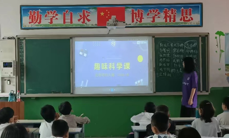 圖為支教團成員在為三年級同學開展趣味科學活動。 靳秋悅 攝