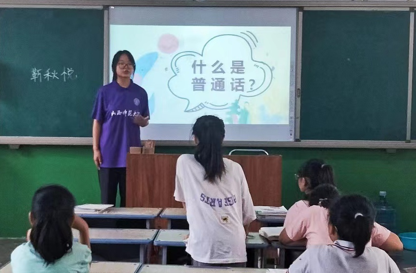 圖為支教團成員在為五年級學生開展普通話講解課程。 張鈺洋 攝